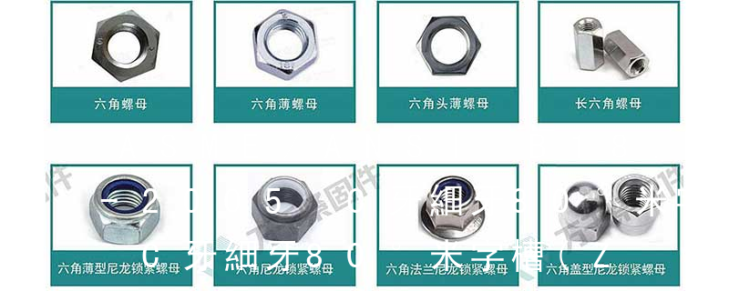 1、Flat:平頭 (鎖入后,頂部與工作件齊平)2、Oval:色拉頭、O頭、半沉頭 3、Round:圓頭 4、Pan:圓扁頭 5、Truss:大圓扁頭 6、Hex:六角頭 A-5:Finish Code/外觀處理。公制自攻螺絲 :于品名后方直接標示 Tapp 特殊用途螺釘例如有吊環(huán)螺釘等供吊裝零件用。4. 螺母:帶有內螺紋孔,形狀一般呈顯為扁六角柱形,也有呈扁方柱形或扁圓柱形,配合螺栓、螺柱或機器螺釘,用于緊固連接兩個零件,使之成為一件整體。5. 自攻螺釘:與機器螺釘相