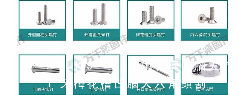 1.機螺釘 2.自攻螺釘 3.鉆尾螺釘 4.墻板釘 5.纖維板釘 6.木螺釘7.六角木螺釘 8.不脫出螺釘 9.組合螺釘 10.微型螺釘 11.家具螺釘 12.電子螺釘頭型:1.六角頭(hexagon head) 2.六角頭法蘭面(hexagon head with flange) 3.
